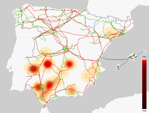 Distribución geográfica peninsular de las instalaciones de energía solar térmica