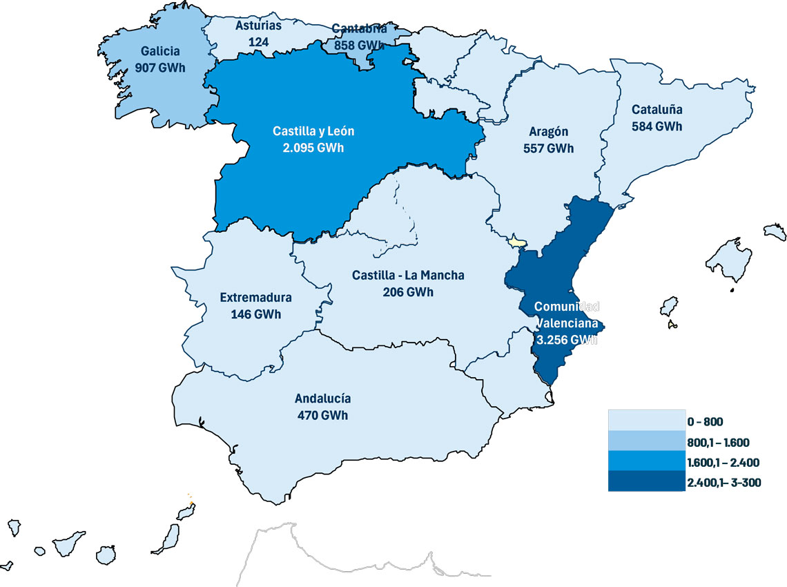 - En la Comunidad Valenciana las instalaciones de almacenamiento de bombeo puro permitieron durante 2025 la integración de 3.256 GWh, la mayor cantidad de todo el territorio nacional.